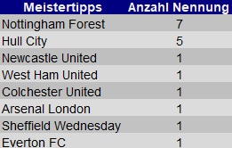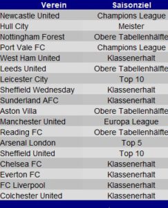 So ein letztes Mal: Alles raushauen, was geht! Newcastle tritt bei Manchester United an! Der Schwung aus den letzten Spielen ist dahin und man tut sich schwer! Am Ende gibt man das Spiel sogar komplett aus der Hand! Damit liegen nun alle Trümpfe bei Hull City! Die müssen allerdings gegen Leicester City ran, die um das internationale Ticket kämpfen! Man zeigt sich völlig von der Rolle und verliert komplett die Nerven! Am Ende prankt eine 0:8 Niederlage auf der Anzeigentafel! Damit ist die Entscheidung gefallen: Newcastle United holt sich die Meisterschaft! Herzlichen Glückwunsch Zettelbox! Nach sechs Jahren geht der Titel wieder nach Newcastle! Nottingham kann erneut drei Punkte sichern! Ein starkes Trio oben, was am Ende nur zwei Punkte trennt! Port Vale beendet das vierte Spiel im Finale mit dem vierten Sieg, logisch das damit Platz 4 verteidigt wird! Was für eine Achterbahn-Saison, mit positivem Ausgang! Colchester zieht als Fünfter über die Ziellinie, auch hier kann man zum Abschluss der Saison nochmal drei Punkte einfahren! Leeds auf Platz 6 holt sich minimalistisch mit einem 1:0 den Sieg und lässt der Konkurrenz keine Chance auf die internationalen Plätze! Im Abstiegskampf kann City sich immerhin mit einem Sieg verabschieden! Ipswich, als auch Liverpool verlieren ihre Spiele! Somit ist es Glück für Chelsea, die parallel bei Colchester verlieren und keine Konsequenzen spüren müssen. City springt somit zwar noch auf Platz 16, aber am Ende ist das nur Kosmetik! Für das absolute Urgestein Ipswich Town geht es runter in die zweite Liga! Als erster der ewigen Tabelle und ehemaliger Champions League Sieger bleibt nur zur hoffen, dass man schnell wieder den Weg nach oben finden kann! Hinweis: Liverpool sicherte sich den Pokal und spielt somit international und kann daher nicht absteigen.